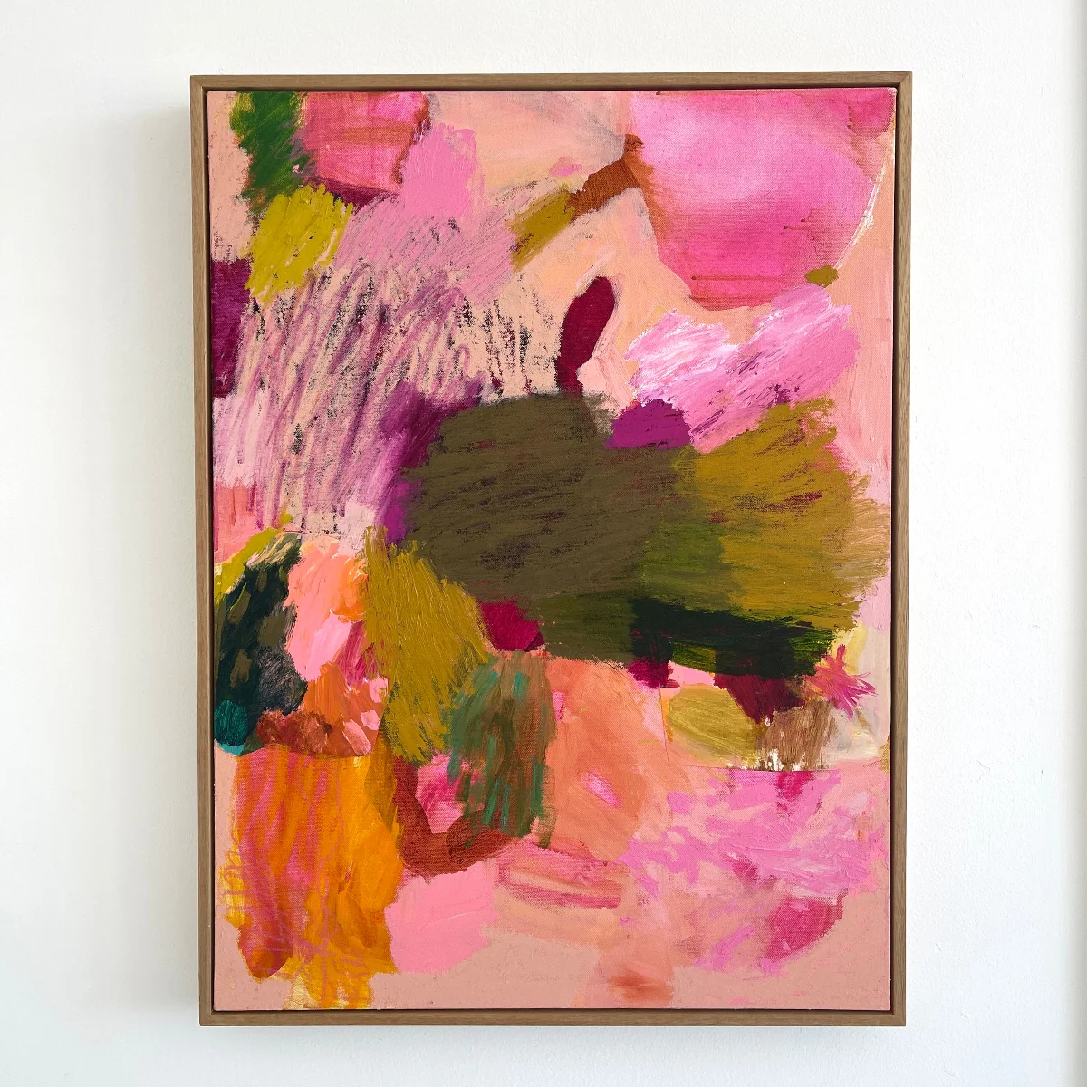 Framed in raw oak.